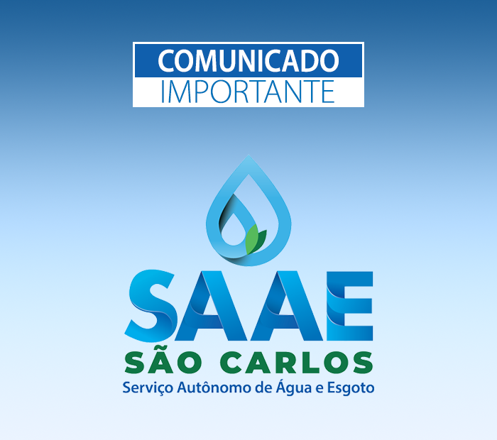 O Serviço Autônomo de Água e Esgoto de São Carlos (SAAE) informa que no próximo domingo, 18/02, realizará o conserto de vazamento de água existente… Continue a ler »NOTA – CONSERTO de VAZAMENTO DE ÁGUA (JESUÍNO DE ARRUDA / 9 DE JULHO) – 16/02/2024 – SEXTA-FEIRA