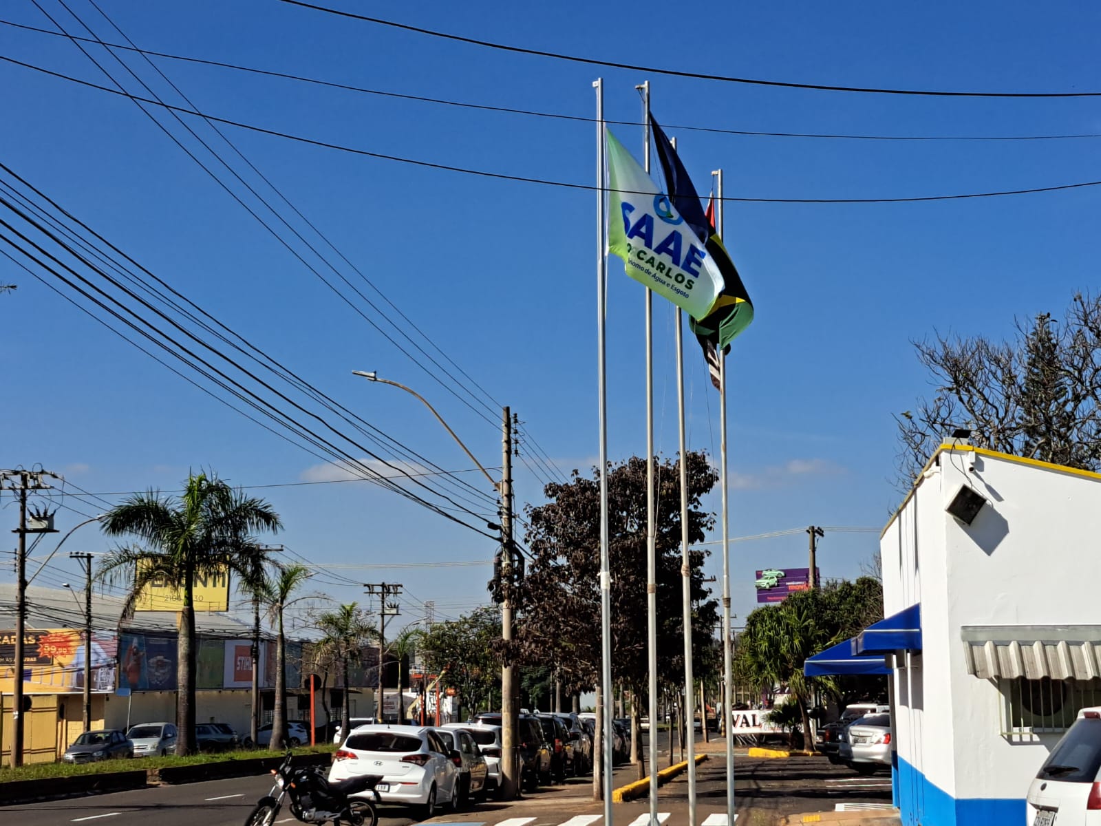 O Serviço Autônomo de Água e Esgoto de São Carlos (SAAE) colocou a bandeira da autarquia no quarto mastro na frente da sede administrativa na Avenida Getúlio Vargas, conforme orienta a ordem pelo protocolo oficial. Já estampada com a nova logomarca, lançada e apresentada ao público no último dia 26 de junho durante as comemorações dos 54 anos do SAAE, ela está ao lado das bandeiras do Estado de São Paulo, do Brasil e da cidade de São Carlos.