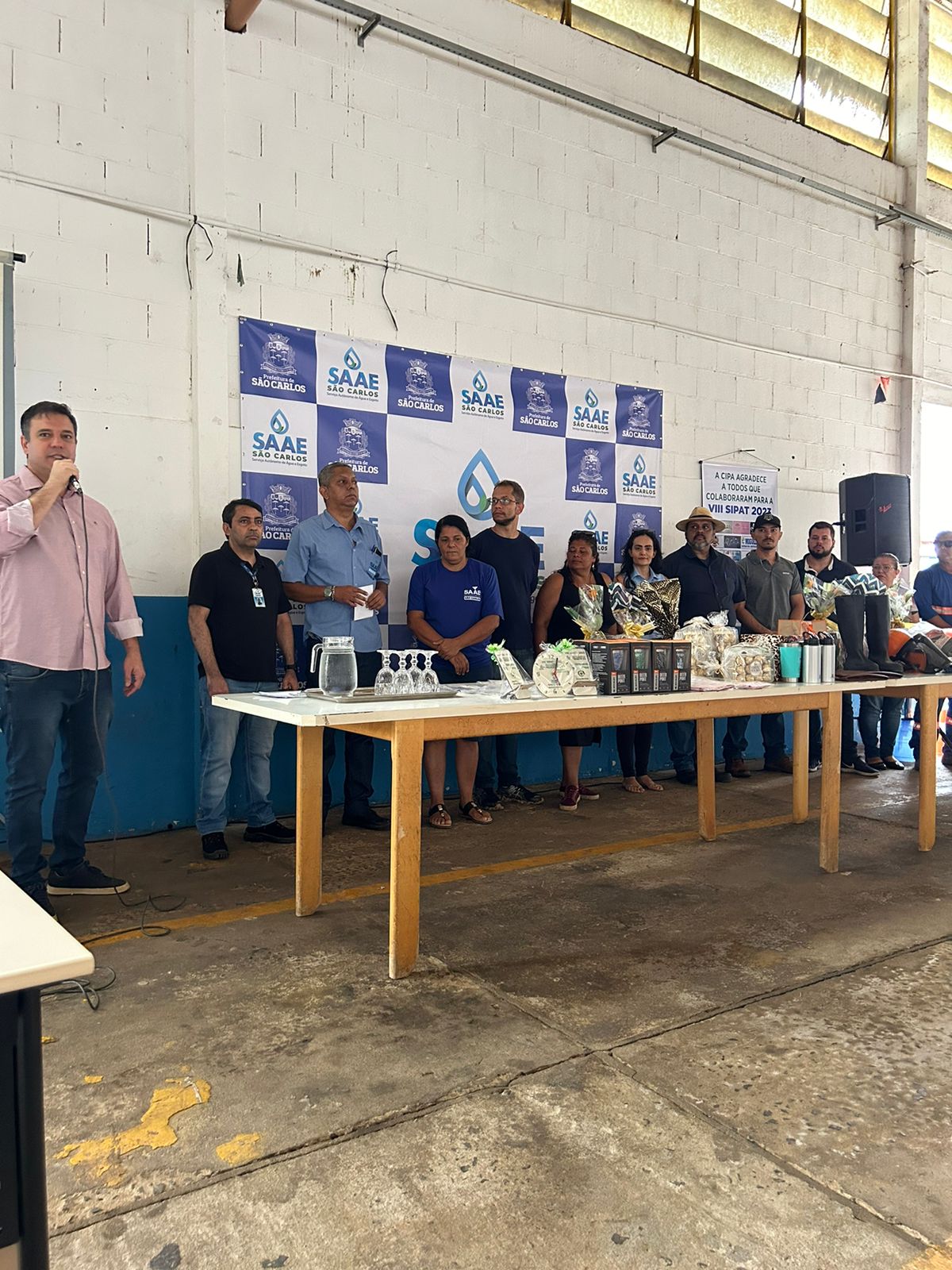 O presidente do SAAE, Engenheiro Mariel Olmo, participou da abertura oficial da VIII SIPAT. “Todas as iniciativas da CIPA são muito importantes porque levam o fundamental para os servidores: informação. Segurança no trabalho envolve diversas condutas e posturas, e quanto maior o volume de dicas e cuidados, menor será o impacto negativo no conjunto das equipes de trabalho nos seus vários setores. Parabéns aos integrantes da nossa CIPA e a todos os servidores do SAAE”.