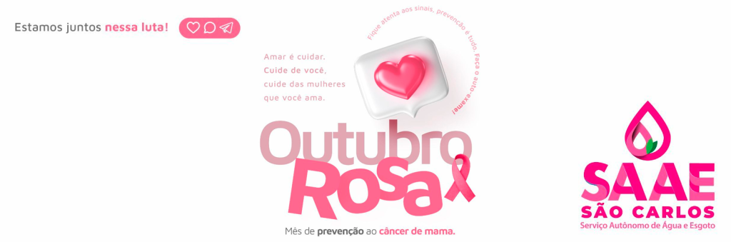No mês de outubro, o Serviço Autônomo de Água e Esgoto (SAAE) está engajado na campanha do Outubro Rosa. Este é um momento de conscientização sobre a importância da prevenção e do diagnóstico precoce do câncer de mama. O SAAE se une a essa causa, lembrando a todas as mulheres da nossa comunidade da necessidade de realizar exames regulares e cuidar da sua saúde.