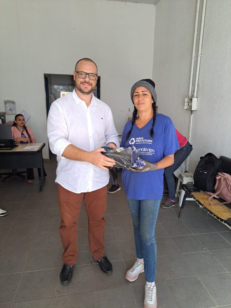 Gabriel Costa Blanco, visitou a cooperativa e entregou kits de EPIs a cada cooperado, contendo botas, luvas e óculos de proteção.