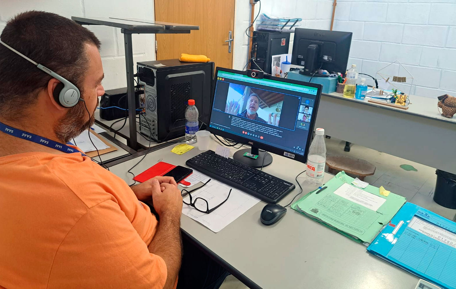 Eduardo Casado, Gerente de Drenagem e Manejo de Águas Pluviais e Alex Fabiano Ciacci, Chefe do Setor de Projetos e Obras de Manejo de Águas Pluviais do SAAE, participam, juntos, de modo online, do curso que começou nesta terça-feira, 08/08, e vai até 31/10, sempre uma vez por semana, totalizando 30 horas.