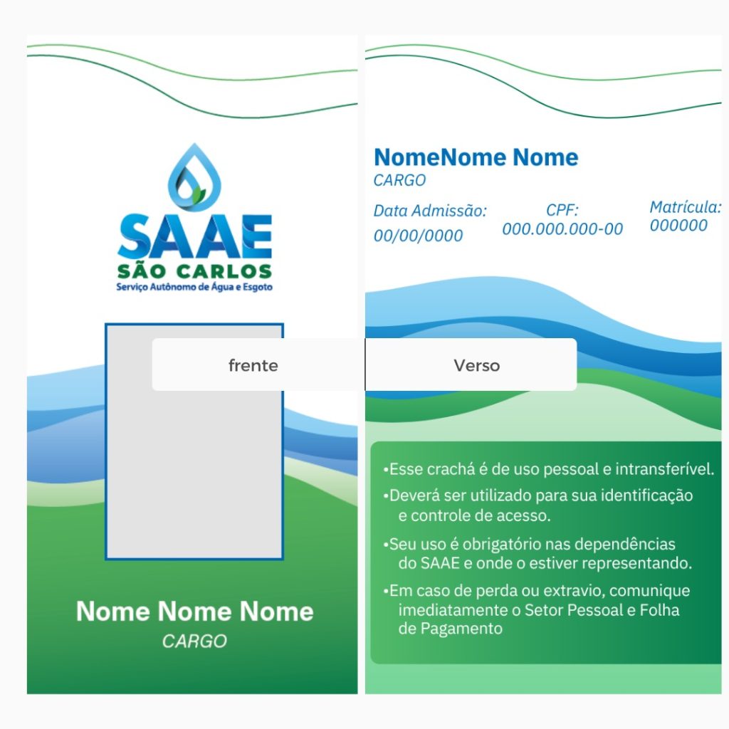 A identificação adequada é fundamental para garantir a confiança da comunidade, especialmente em atendimentos realizados fora das unidades do SAAE, como visitas técnicas e manutenções. Além disso, contribui para a organização interna, o controle de acesso e o fortalecimento da imagem institucional da autarquia.