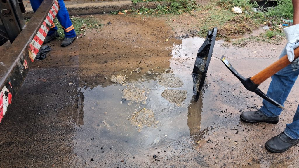 Rua Aparecido da Silva. Desobstrução da rede de esgoto